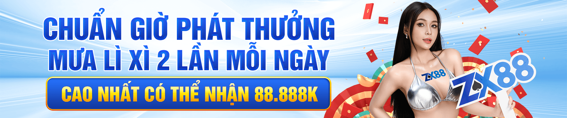 Nhà cái ZX8811 mang đến loạt khuyến mãi siêu khủng dành cho mọi thành viên, nổi bật nhất là cơ hội nhận thưởng giá trị lên đến 88,888,888K khi tham gia các sự kiện đặc biệt. Người chơi mới được tặng thưởng nạp đầu cao, trong khi thành viên lâu năm hưởng hoàn cược thể thao – casino hằng ngày, ưu đãi slot – bắn cá và vòng quay may mắn giá trị lớn. Hệ thống còn tặng giftcode theo tuần, điều kiện dễ nhận, rút thưởng nhanh, giúp người chơi tăng vốn và trải nghiệm cá cược hiệu quả hơn.